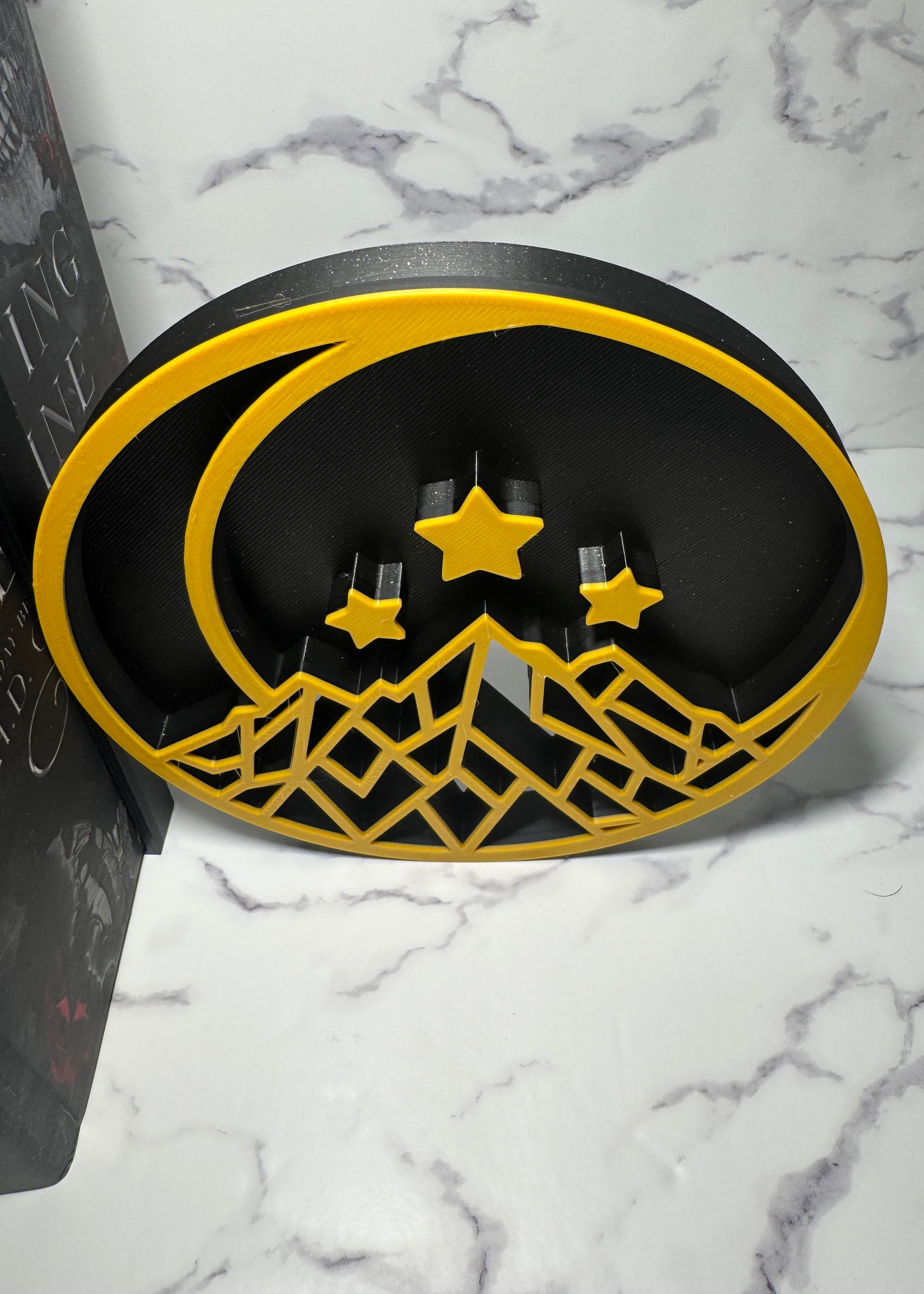 Celestial Mountain Bookends Set (Left + Right) | Crescent Moon & Stars | Geometric Peak Shelf Decor | 3D Printed Bookish Decor