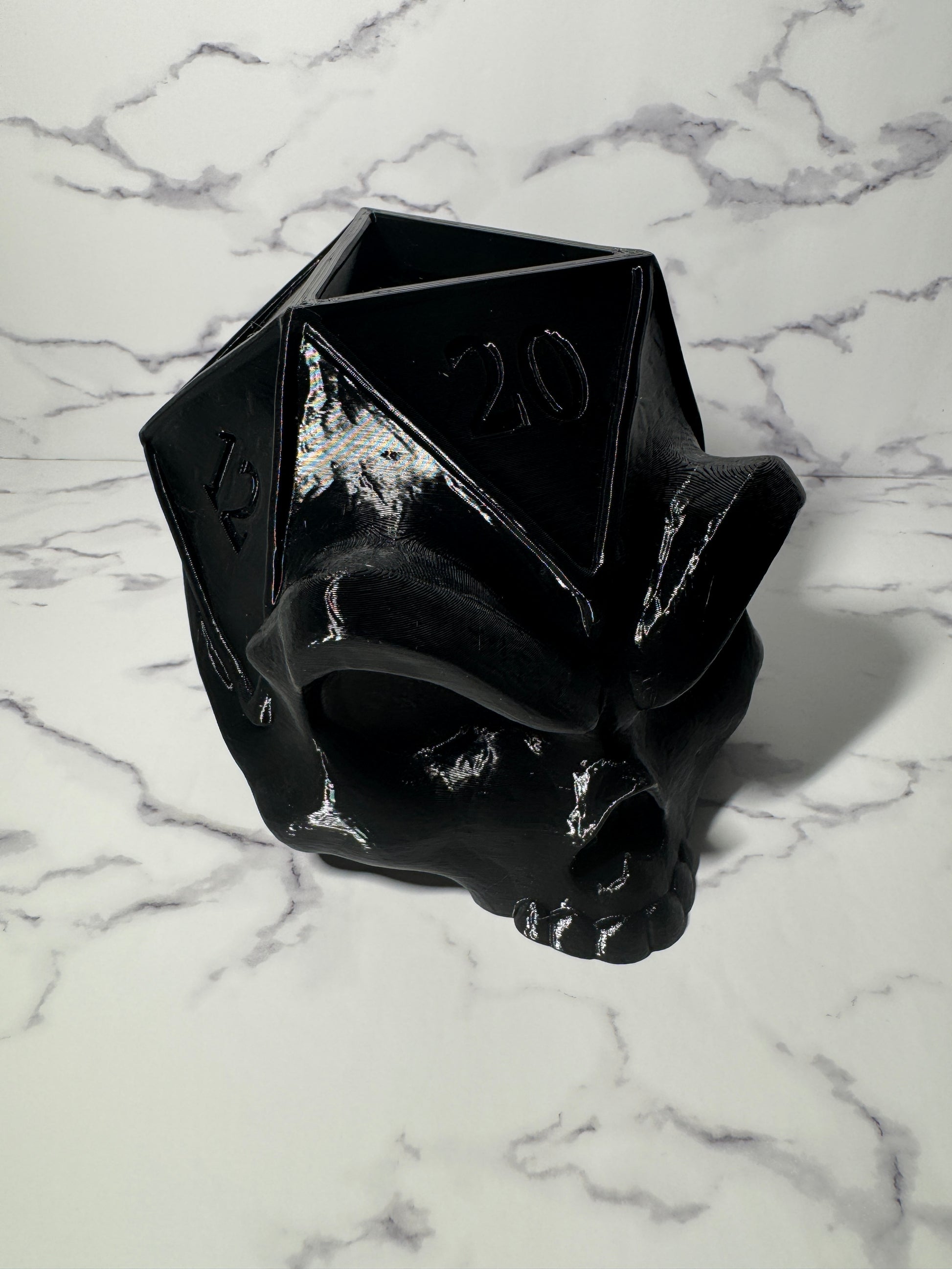 D20 dice-inspired hide with engraved numbers